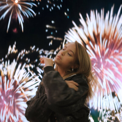 Герои песни находятся вместе перед неизбежным расставанием. Они держатся за руки, стараясь удержать мгновение, которое кажется бесконечным. Небо украшено фейерверками, символизирующими яркие эмоции и воспоминания, но также подчёркивающими быстротечность чувств. Вспоминаются мелкие детали прошлых встреч: надписи на куртке, улица, дом, одежда и шутливые реплики друг друга. Несмотря на близость, герои осознают, что внутри них погасли звезды, и надежды больше нет. Салюты в небе напоминают о том, насколько быстро исчезают чувства, оставляя лишь прекрасные воспоминания.
