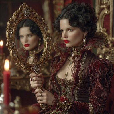 Композиция основана на фрагменте из сказки Александра Сергеевича Пушкина "Сказка о мёртвой царевне и о семи богатырях". В ней рассказывается о том, как злая царица обращается к своему волшебному зеркальцу с вопросом, кто на свете всех милее. Зеркальце отвечает, что царица прекрасна, но царевна, дочь царя, ещё красивее. Этот ответ вызывает зависть и ревность у царицы, что становится отправной точкой для дальнейших событий в сказке.